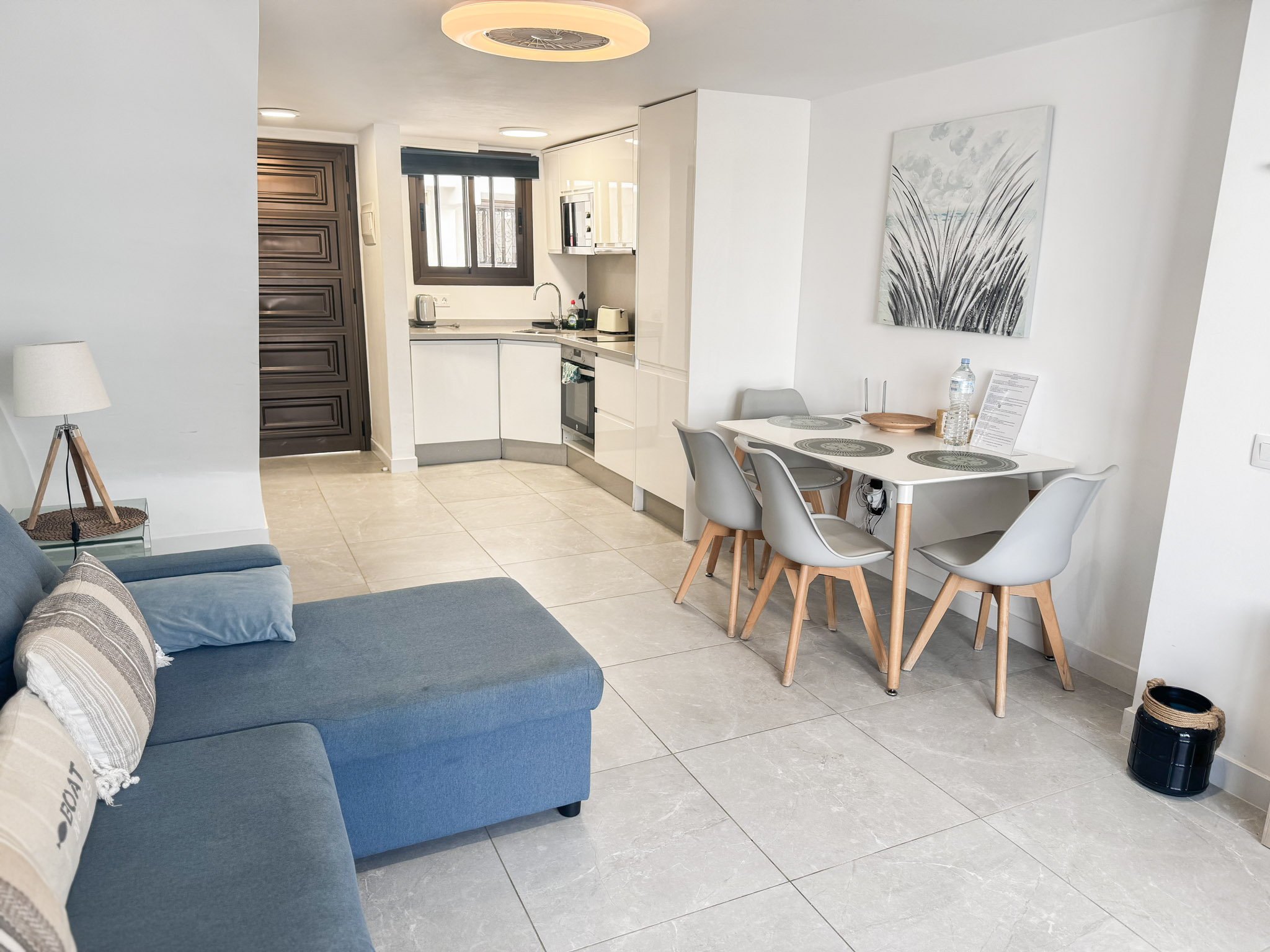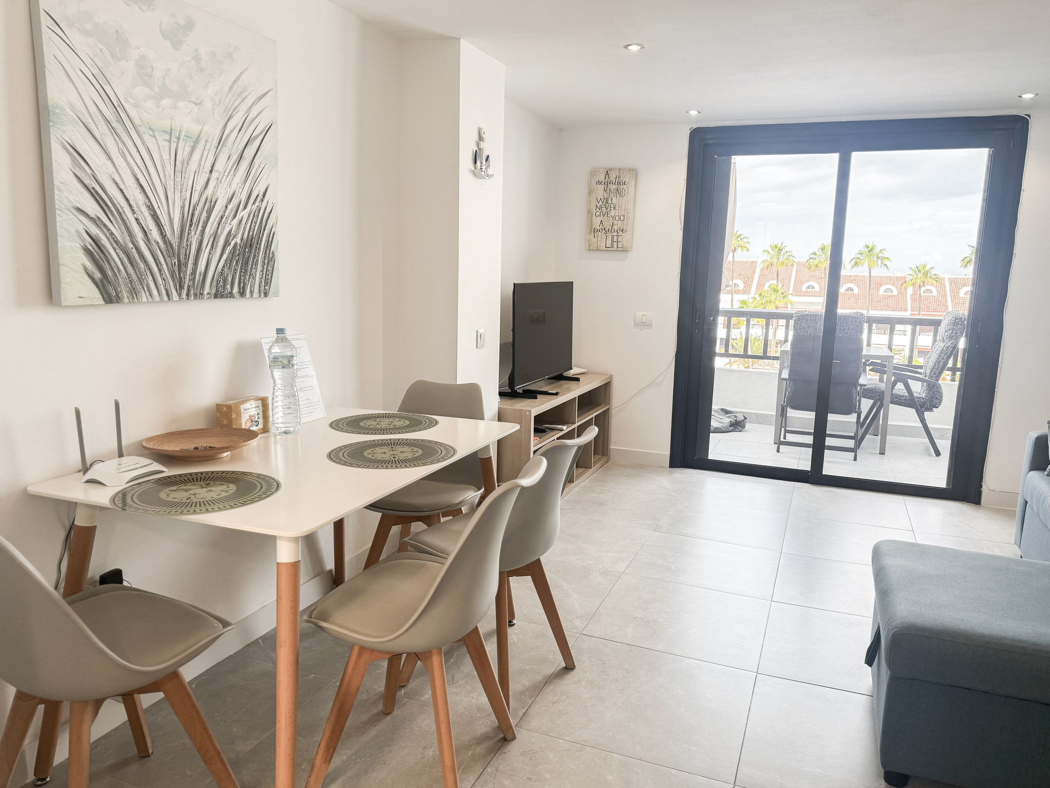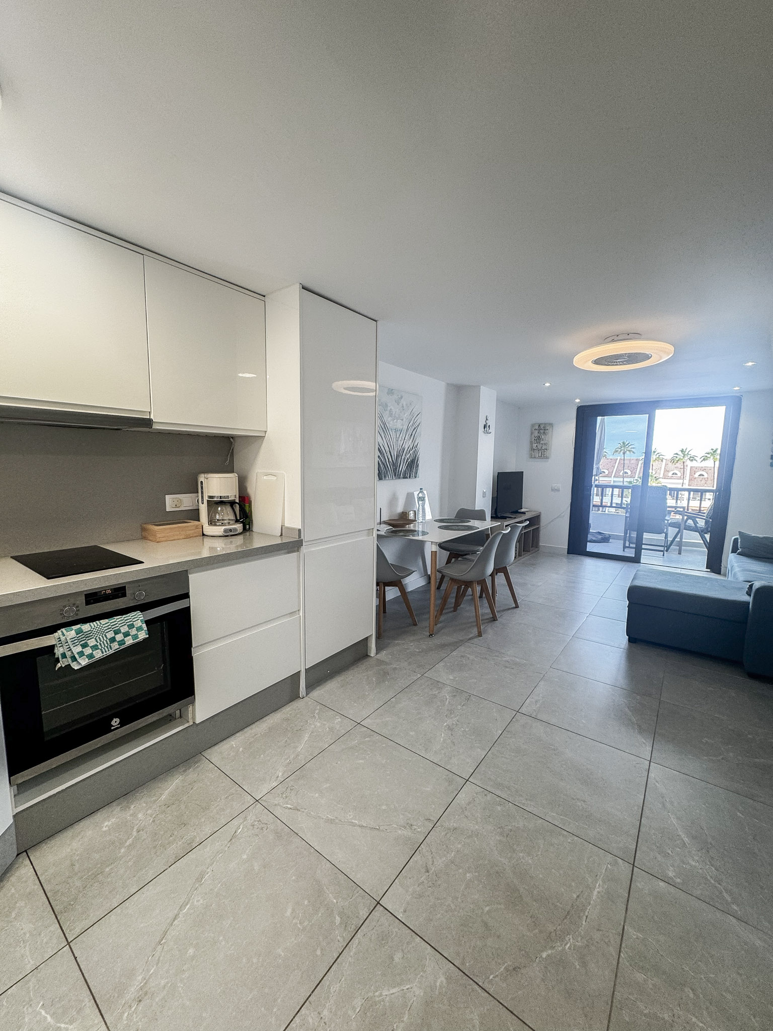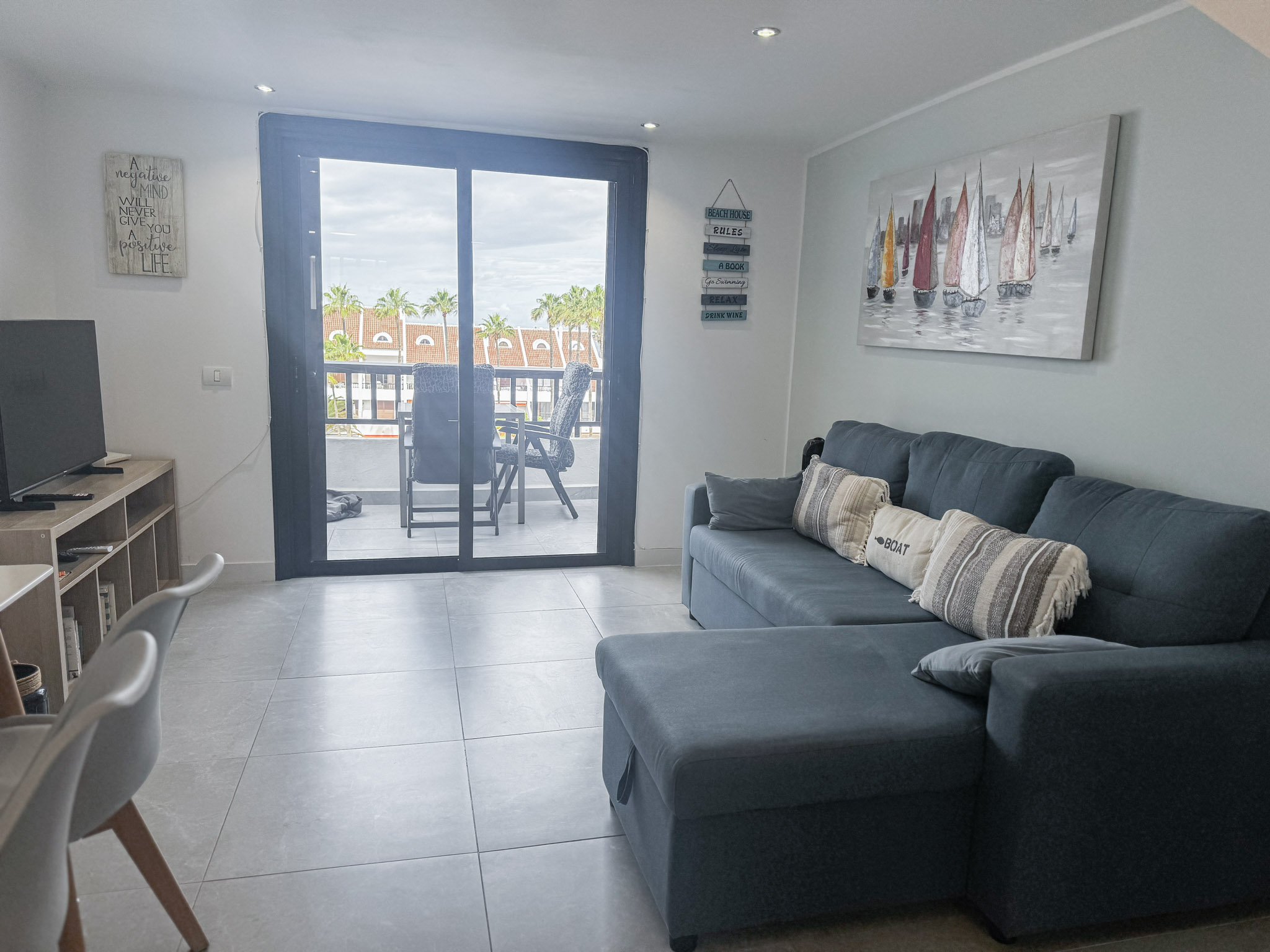 Enjoy the fantastic views from this 1 bedroom apartment in the heart of Las Americas in the famous and very popular Parque Santiago II complex. The apartment is close to shops, restaurants, entertainment and of course the beach (a couple of minutes walk) The apartment was recently renovated to a high standard with a modern design, large screen Smart tv with International channels. There is a balcony with outdoor furniture and great views over the pool and Ocean towards La Gomera. The upper floor bedroom is in 2 open sections, each with 2 single beds. In addition there is a sofa bed in the lounge. Please remember, 3rd floor no lift (yet).